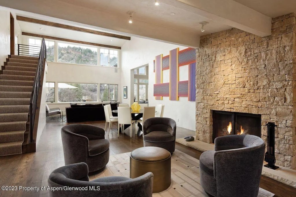 This stunning mountain contemporary home in Aspen, Colorado is a true masterpiece that perfectly blends modern luxury with natural beauty. The open floor plan and floor-to-ceiling windows provide ample natural light and breathtaking views of the surrounding mountains. The home is filled with magnificent artwork that adds a touch of sophistication and elegance to the space. The gourmet kitchen features top-of-the-line appliances and plenty of counter space, making meal prep a breeze. The outdoor living space is equally impressive, with a large deck with hot tub and fire pit that are perfect for entertaining guests or enjoying quiet evenings under the stars.Overall, this mountain contemporary home is a true gem in the heart of Aspen. With its sleek and contemporary design, breathtaking views, and luxurious amenities, it offers the perfect balance of modern luxury and natural beauty. Don't miss your chance to rent this stunning property and experience the best that Colorado living has to offer. Has STR Permit and is not in COA so STR tax rate is 6.9%. Overall, this mountain contemporary home is a true gem in the heart of Aspen. With its sleek and contemporary design, breathtaking views, and luxurious amenities, it offers the perfect balance of modern luxury and natural beauty. Don't miss your chance to rent this stunning property and experience the best that Colorado living has to offer. Has STR Permit and is not in COA so STR tax rate is 6.9%.