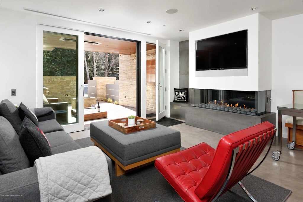 This superbly remodeled one-bedroom condo by Rowland + Broughton exudes sophistication with its tasteful finishes and sleek design. Located right in the heart of Aspen's Downtown Core, you'll relish the utmost convenience of being just a short walk from Lift 1A, top-notch restaurants, boutique shops, scenic parks, and theaters. This condo seamlessly connects indoor and outdoor living with sliding glass doors that lead to an expansive snowmelt patio featuring a fire pit and gas grill, providing the ideal setting for entertaining while soaking in mesmerizing views of Aspen Mountain. The master bedroom has been thoughtfully customized with separate built-in closets for his and hers, along with extra storage beneath the king-size platform bed. Additional luxuries include one-touch automated blinds in the living room and bedroom, a built-in 4-zone home audio speaker system complemented by two flat-screen televisions, a full-size wine fridge, a side-by-side Bosch washer and dryer, secure outdoor ski and bike storage.
