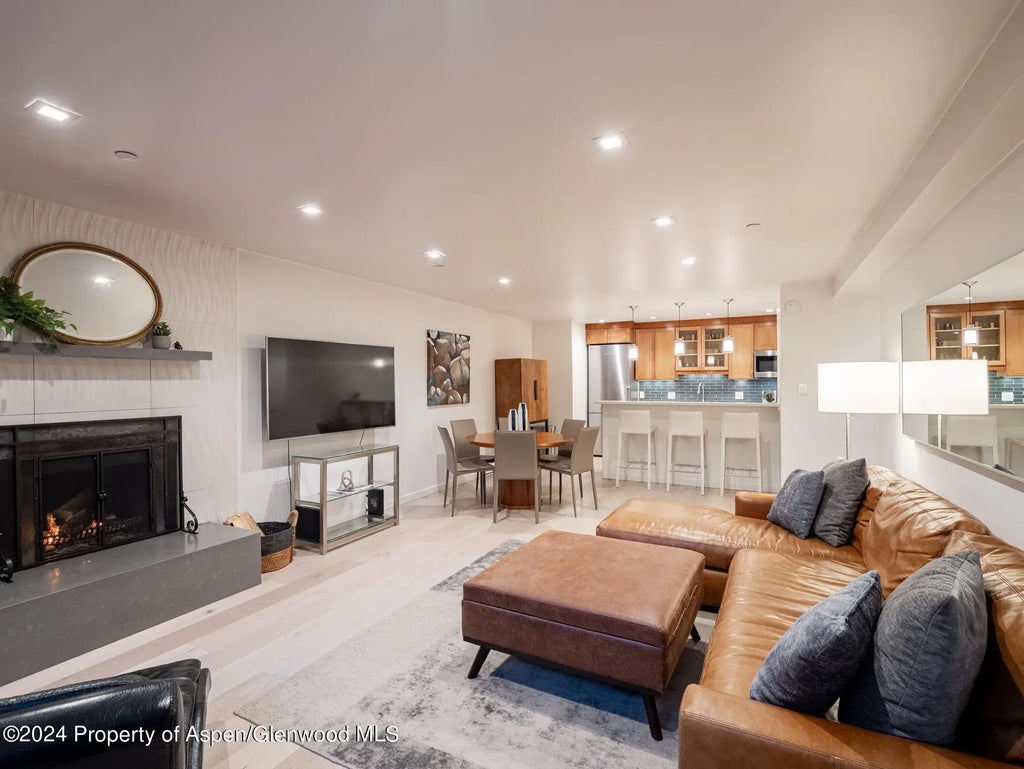 Welcome to your dream Aspen retreat! Our newly renovated 2-bedroom, 2-bathroom home is situated in a prime central location, perfect for your Aspen experience. This spacious corner unit on a lower level is bathed in natural light, thanks to its floor-to-ceiling glass wall and private entrance. Spend relaxing evenings by the wood-burning fireplace and enjoy the convenience of an in-unit washer/dryer and a fully updated kitchen equipped with a dishwasher and high-end Bosch appliances. You'll also have access to numerous onsite amenities, including parking, a ski locker, a gym featuring a Peloton bike, a heated lap pool, a sauna, and two hot tubs just steps away.