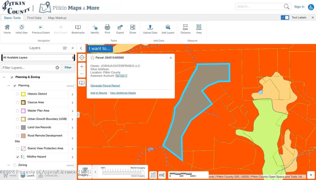 Buyer to independently verify all development potential, zoning, water source, spring use or rights, well and septic feasibility (including ISDS approval, the county approval required for a septic system), and final homesite placement through Pitkin County and appropriate professionals.