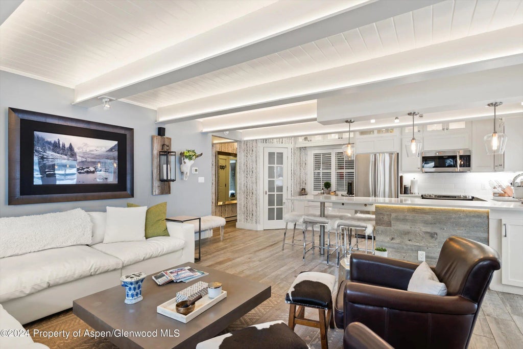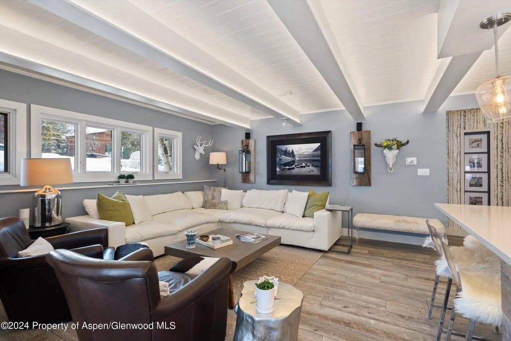 Situated just two blocks from the heart of Aspen's downtown core, this elegantly remodeled three-bedroom, two-bathroom condominium is the perfect launchpad for the ultimate mountain lifestyle. Light and bright, featuring contemporary finishes, a gas fireplace, and expansive outdoor living area for entertaining, the property also includes a dedicated, double-deep parking space and hot tub. Every detail has been meticulously designed to make this residence the epitome of luxury mountain living.