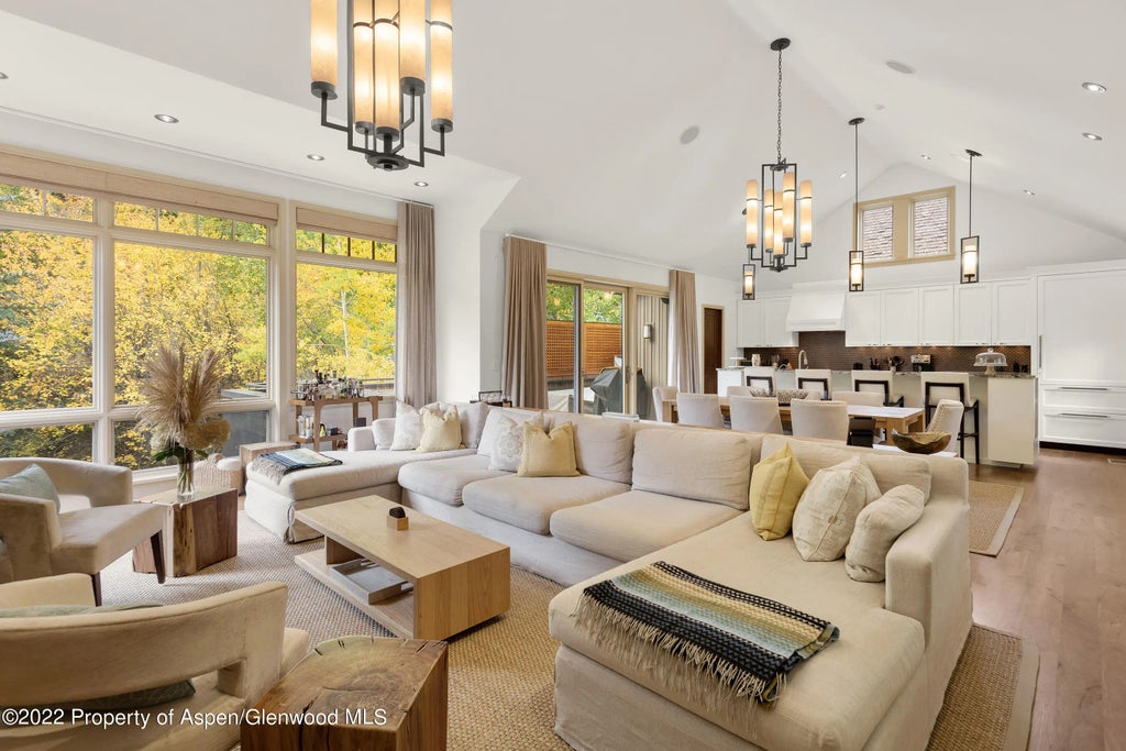 Exceptional 4 bed 4.5 bath contemporary, new west end home just 5 easy blocks to the core. Open living, kitchen dining area is perfect for families and entertaining. Stunning views of Aspen and Shadow mountain and situated on the Hopkins Street pedestrian way. Amenities include a large deck off the main living area, two car garage, hot tub, elevator, central AC, chefs kitchen, radiant floor heating. The perfect ski house or summer retreat. STRC 016503