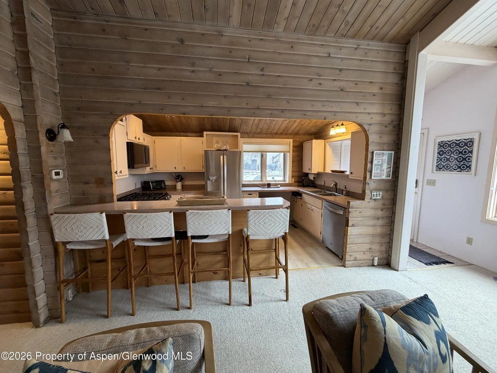 Enjoy breathtaking views of Aspen Mountain from this cozy yet spacious 2-bedroom half-duplex. With warm wood walls and exposed beams throughout, this alpine-style retreat offers the charm of a mountain cottage with the convenience of in-town living. Step outside to the large backyard — perfect for relaxing or entertaining. Located within walking distance to Herron Park and Downtown Aspen, this home is ideal for enjoying the best of every season. Additional highlights include ample parking and a prime location in one of Aspen's most desirable neighborhoods.