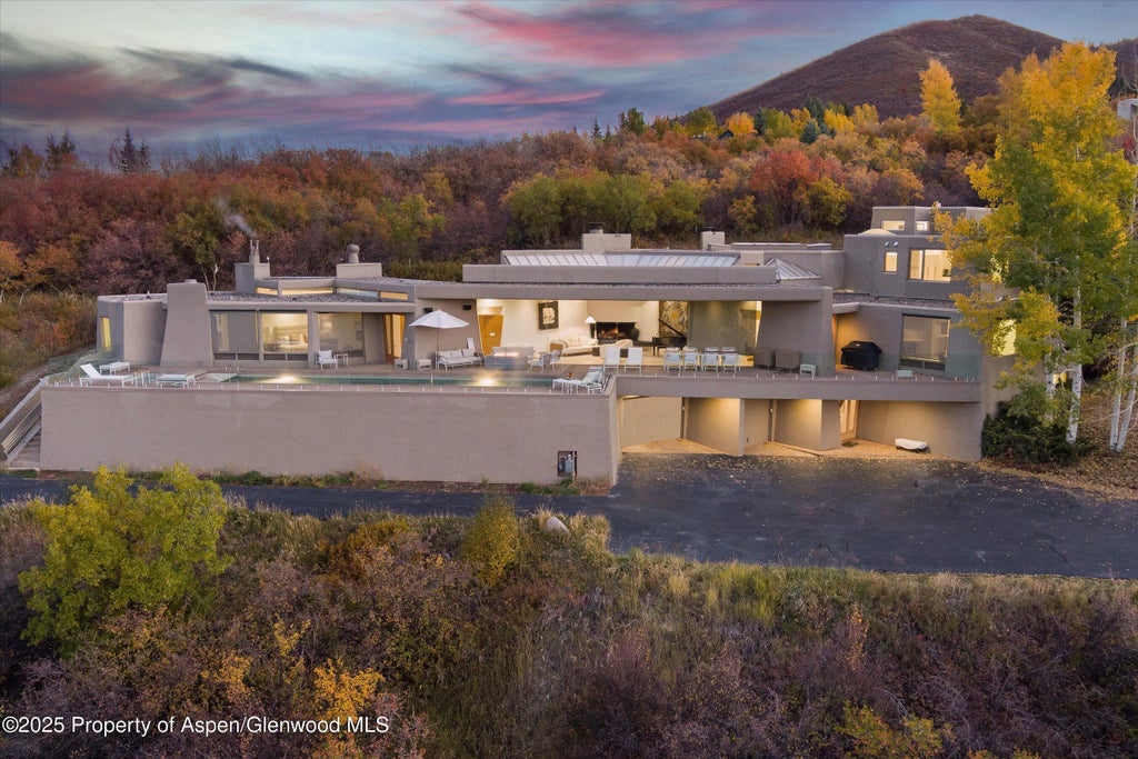 Experience Aspen at its finest in this one-of-a-kind Starwood estate, designed by acclaimed architect Robin Molny, a protégé of Frank Lloyd Wright and Fritz Benedict. This iconic modern residence captures the essence of Aspen's rich architectural history while offering the best in luxurious mountain living and awe inspiring views! Recently remodeled with impeccable attention to detail, the home blends striking original design elements—like angular pivoting doors and stucco-battered walls—with elegant, modern updates. Expansive windows throughout showcase unrivaled, panoramic views of all four Aspen Snowmass ski mountains and the Roaring Fork Valley from Independence Pass to Sopris Mountain. Available for both short-term and long-term rental, this exceptional residence offers a rare opportunity to live in one of Aspen's exclusive gated and most coveted neighborhoods with breathtaking views, complete privacy, private pool and outdoor living space, tennis courts, and effortless access to everything Aspen has to offer. Make this your home for a season or full time! Rate $125,000/winter month I $145,000/summer month I Long Term $65,000/month plus utilities.