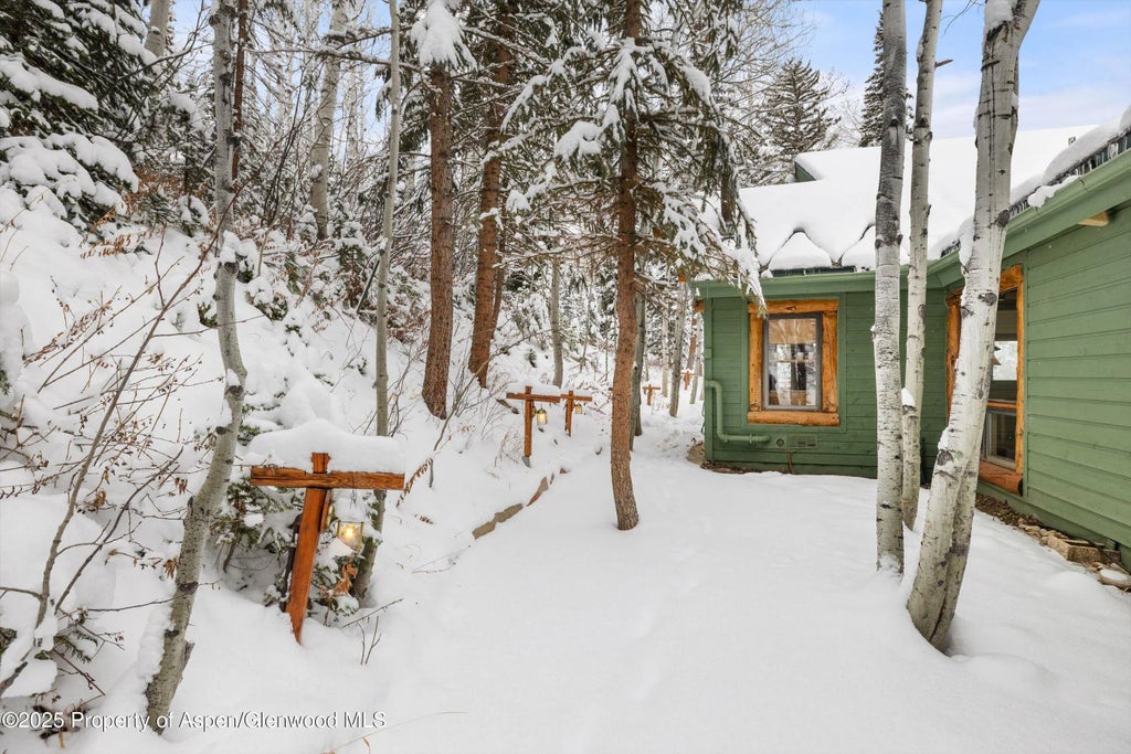 This inviting two-story single-family home offers a practical layout and generous space for everyday living in the desirable Ridge Run neighborhood of Snowmass Village. Warm, mountain-inspired finishes and preserved architectural details are complemented by mature aspen and conifer trees that provide privacy and a natural backdrop. The main level features an open floor plan connecting the living, dining, and kitchen areas, creating an easy flow for daily use and entertaining. These spaces capture down-valley and across-valley views and are anchored by a wood-burning fireplace. A dedicated office adds a flexible living space. The home includes four bedrooms and four and a half bathrooms. Primary bath improvements, including a walk-in shower, are anticipated in Spring 2026, while additional bathrooms feature tub/shower combinations, including one with a jetted tub. Outdoor amenities include front and rear decks, a hot tub, and a heated two-car garage with hot and cold water. A standout feature is the separate guest quarters with a private entrance, kitchenette, full-size refrigerator, and en-suite bath, offering added flexibility and privacy. Well-maintained and thoughtfully designed, the home provides comfort, character, scenic views, and valuable bonus spaces. Not pictured is a detached studio suitable for office, wellness, or creative use.