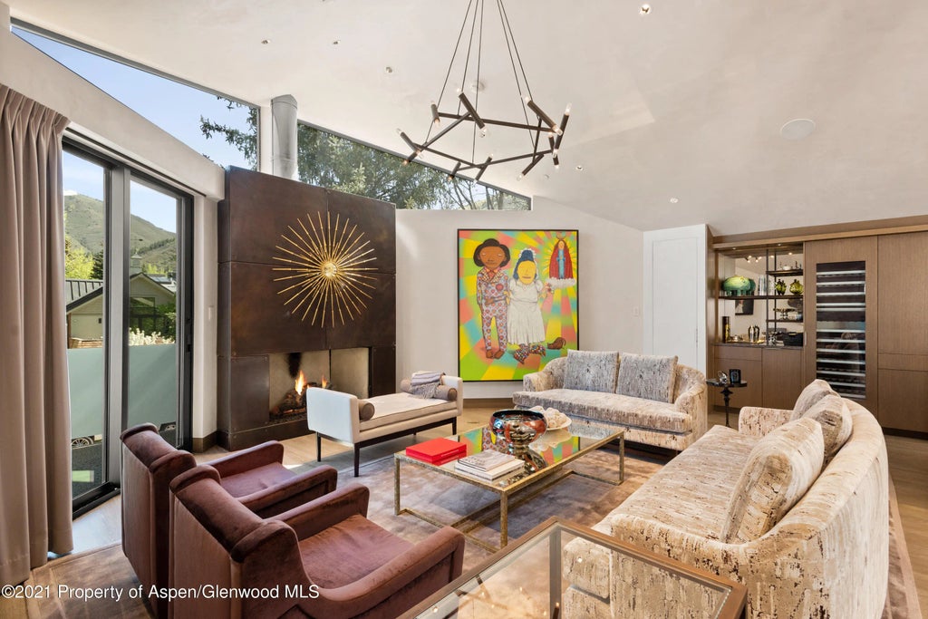 Sophisticated tri-level duplex located in the heart of downtown Aspen. The dramatic entryway showcases the stunning floating staircase leading up to the upper level with vaulted ceilings, two living rooms each with a fireplace, gourmet chef's kitchen, dining room for eight and large outdoor patio with dining area, hot tub and lounge spaces. The gorgeous primary suite and guest primary suite are conveniently located on the main level. The lower level features a fabulous media/entertainment room and two additional queen suites. Two car garage complete this incredible downtown property.